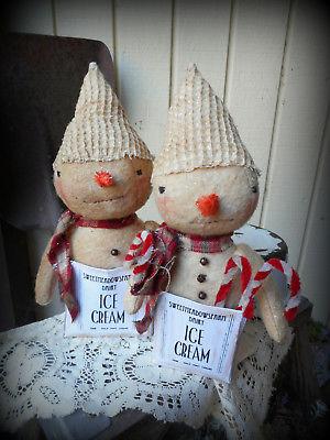 VERY PRIM AGED PLUSH SNO~CONE SNOW~GUY ORNAMENTS~2PRIM BOX~PFATT~