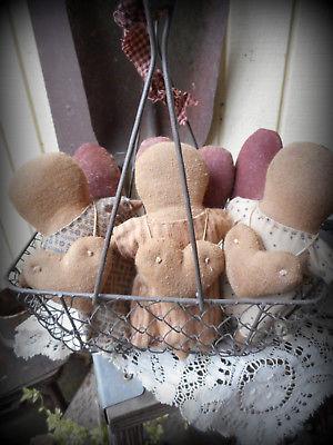 PRIM SWEET 3 MAKE~DO AMERICANA DOLLS IN A METAL WIRE BASKET WITH HEARTS~PFATT~