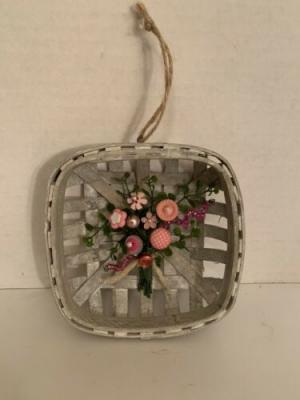 VTG Valentine Button Bokay/Wood Basket-Country Rustic Decor-Prim-Farmhouse Decor