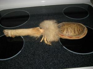 TURTLE SHELL RATTLE, CEREMONIAL RATTLE 16"