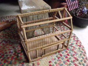 Small Primitive Vintage Decorative Wood & Tin Wire Bird Cage Canary Cage
