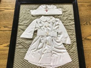 Framed Under Glass Antique Vintage Doll Nurse Dress And Cap