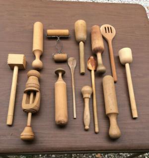 13 Old Antique Primitive Wooden Wood Mashers Kitchen Utensils Pestles