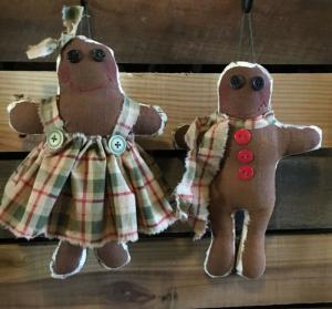 PRIMITIVE DECOR - 4 RESIN GINGERBREAD COOKIES/ORNAMENTS/HOLIDAY DECOR-SET #2