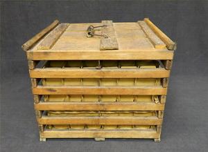 Antique Primitive Wood Egg Carrying Crate Case with Lid Handle & 4 Egg Trays