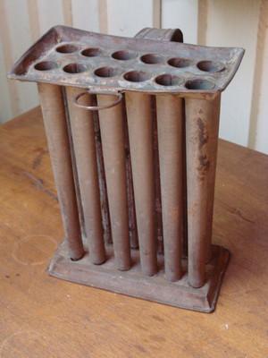ANTIQUE TIN 4 TUBE TAPER MOLD WITH HANDLE