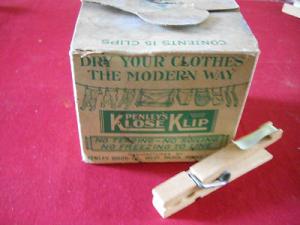 Vintage Wood Clothes Pins, Penley's Klose Klip, in BOX, made in West Paris Maine