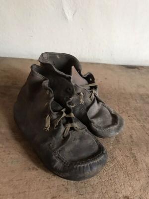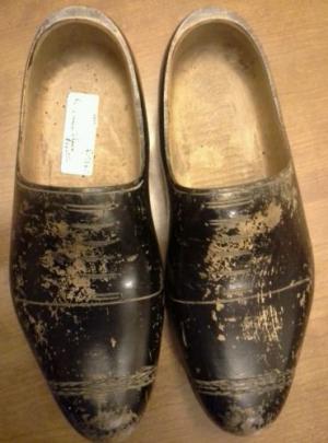 Black antique folk art primitive hand carved wood shoes, size 13? Morvan?