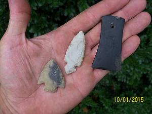 2 Nice Arrowheads & Black Cannel Coal Pendant Indian Artifacts Turkeytail Spear