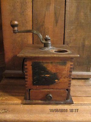 ANTIQUE~VINTAGE~PRIMITIVE~~WOOD & CAST IRON COFFEE GRINDER~WOOD HANDLE