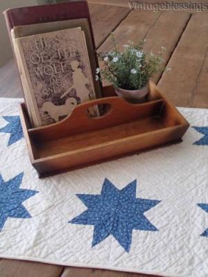 primitive prairie homestead bonnet stained light and dark blue calico design