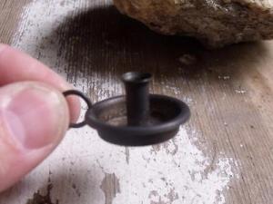 Tiny Old Primitive Vintage Brass Fingertip Candlestick Dollhouse Toy Size Patina