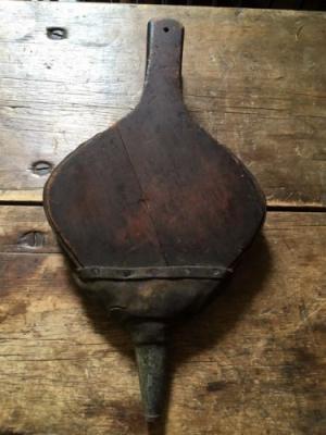 Best Early Antique Wooden & Leather Bellows Hearth Patina AAFA