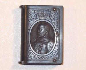 NICE ANTIQUE 1901 VESTA MATCH HOLDER WITH STRIKER AND KING EDWARD DECORATION