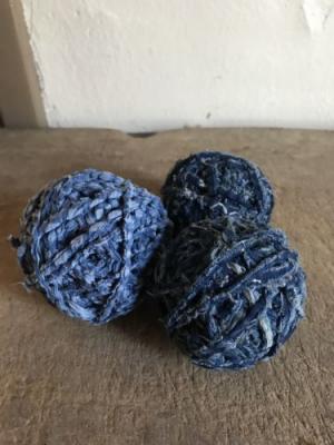 Set Of 3 Large Indigo Blue Calico Rag Rug Balls Handmade Textile AAFA LAST SET
