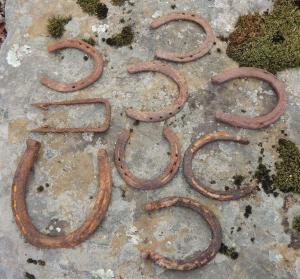 Lot o 9 Vntg Antique cast Iron Horseshoes Old Rusty Craft Lucky Relics Dug In WV