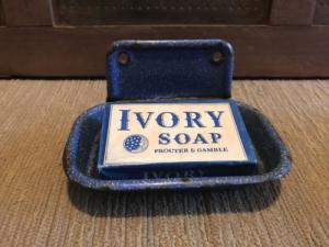 Antique Graniteware Soap Dish With Ivory Soap Bar