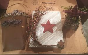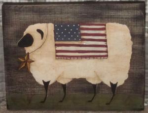 *~*PRIMITIVE*~* HP FOLK ART PRIM SHEEP *~* FLAG *~* BARN STAR *~* BOARD