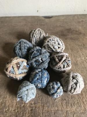 BEST Set 10 Early Antique Handmade Blue Brown Small Rag balls Ragballs AAFA