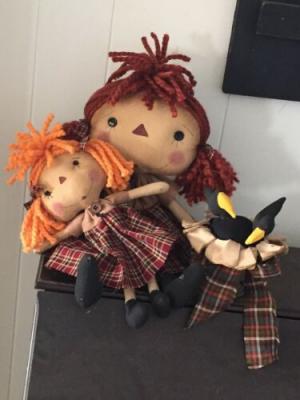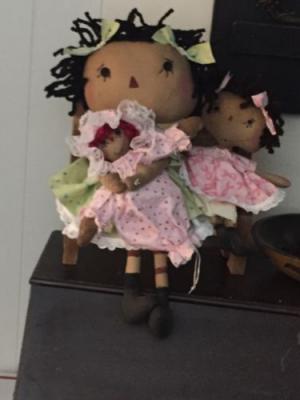Primitive Folk Art Raggedy Mommy, Big Sister And New Baby Sister!!