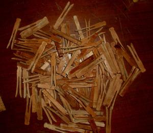LOT OF 118 ANTIQUE WOODEN FLAT SIDED CLOTHES PINS MOSTLY 4" LONG