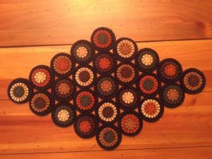 PRIM WOOL FELT PENNY RUG CANDLE MAT TABLE RUNNER BLACK BROWN GREEN ORANGE STRAW