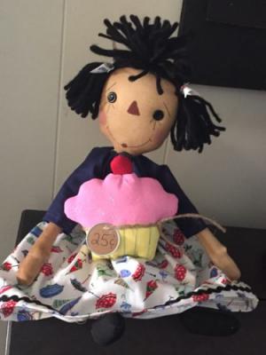 Primitive Folk Art Raggedy Ann Doll Bake Sale!! W/cute Stuffed Cupcake!!