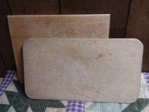 PRIMITIVE VINTAGE FARM COUNTRY WOOD CUTTING BREAD BOARDS CUT MARKS (LOT OF 2)