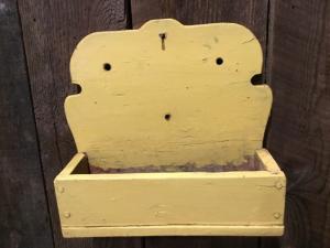 ANTIQUE PRIMITIVE WOODEN WALL POCKET WALL HANGING PAINTED YELLOW
