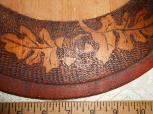Antique Primitive Nail Keg Lid Picture Frame Oak Leaves Acorn Folk Art Fine+++++