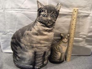 Fabric cat pair. Old vintage stuffed cloth. 13" and 7". Handmade, primitive.