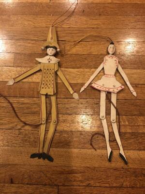 Vintage Metal Folk Art Jumping Jester and Ballerina Toy Original Paint