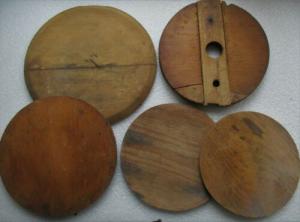 5 ANTIQUE VINTAGE ROUND WOOD CHEESE BOX BOTTOMS BUTTER CHURN PARTS