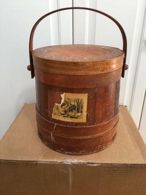 ANTIQUE SHAKER FIRKIN SEWING BOX LARGE SIZE 4 FINGER LAP BANDS LID SIGNED NR!!!