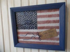 Primitive Americana Decoration - American Flag in Painted Wood Frame with Tag