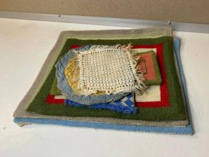 Medium Antique Candle Mat Table Rug Mat Runner Brown & Blue Country AAFA Textile