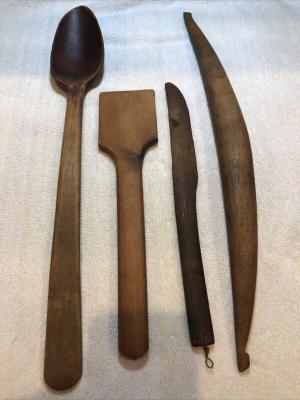 Lot 4 Antique Vintage Primitive Wood Spoon Paddle Spreader Kitchen Utensils