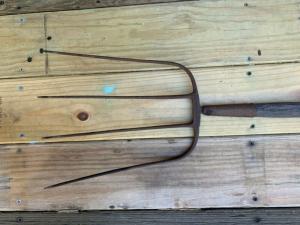 ANTIQUE PITCH FORK 50" Wooden Handle ORIGINAL Co 4 PRONG