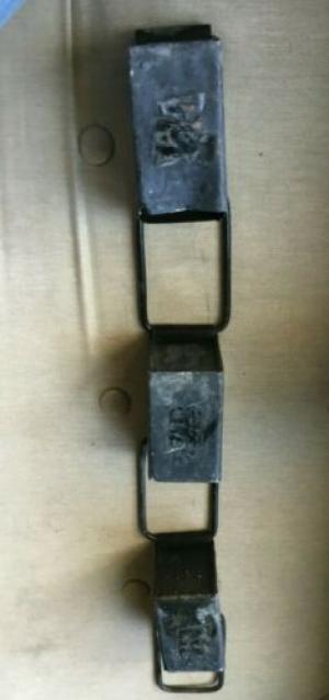 2 Early Antique Blue Brown Homespun Wool Calico Wrapped Old Clothespins AAFA