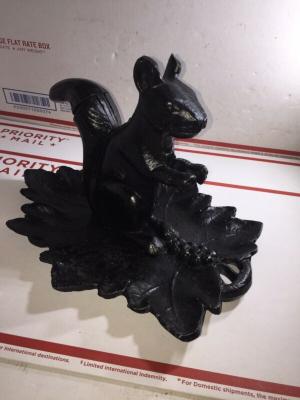 VINTAGE MECHANICAL CAST ALUMINUM SQUIRREL NUT CRACKER LEAF TRAY BOWL - 8" Tall