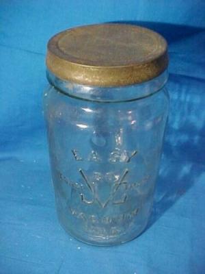 19thc EASY Co VACUUM Quart FRUIT JAR Light Aqua Color