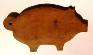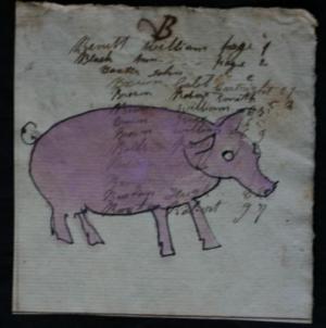 Original Amish Childs Ledger Paper Watercolor Painting of a Pig c.1830s