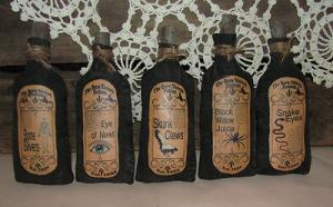 Primitive Halloween Witches Cloth Potion Bottles Ornies./Bowl fillers/Tucks