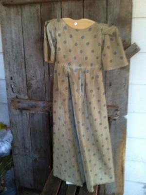 Primitive blue childs Dress early style prairie with makedo make do stand