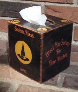 Primitive Halloween BOUTIQUE TISSUE COVER “BLACK HAT SOCIETY FOR FINE WITCHES"