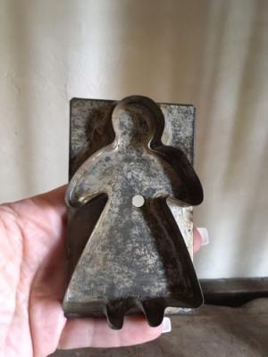 Early Antique Tin Folky Girl In Dress Cookie Cutter Patina AAFA
