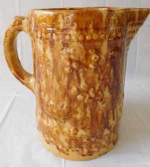 Vintage Stoneware Spongeware 8 1/2" Pitcher Yelloware Strong Sponging EXC!
