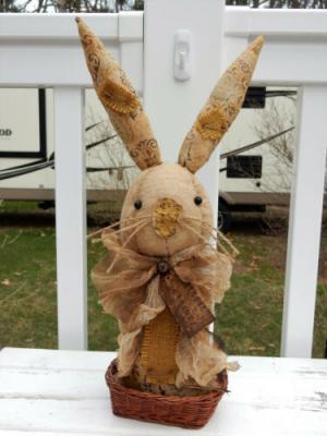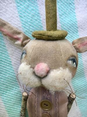 Primitive Grungy Spring Easter 9-1/2" Bunny Rabbit Doll ~ Ro''s Cluttered Attic