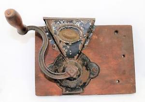Orig 19thc BOX Style CAST IRON + Wood COFFEE GRINDER