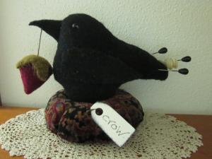 PRIMITIVE CROW BLACK BIRD STRAWBERRY BUTTONS MAKE DO PIN CUSHION PFATT EHAG